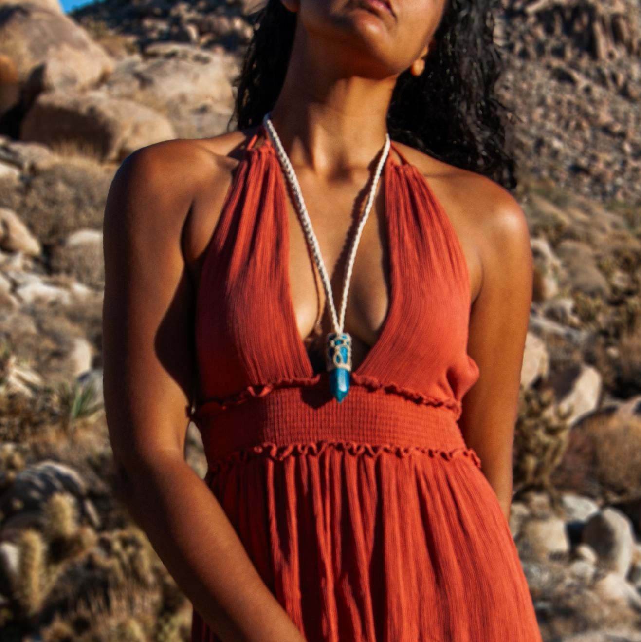 At the heart of our jewelry lies a deep commitment to spiritual healing and personal empowerment. Each statement talisman necklace is handcrafted with precision, featuring large natural gemstones and intricate macrame work that honors both beauty and intention. Designed as powerful energetic tools, our pieces are made for those who seek depth, transformation, and lasting quality. More than adornment, they are sacred companions on your journey.