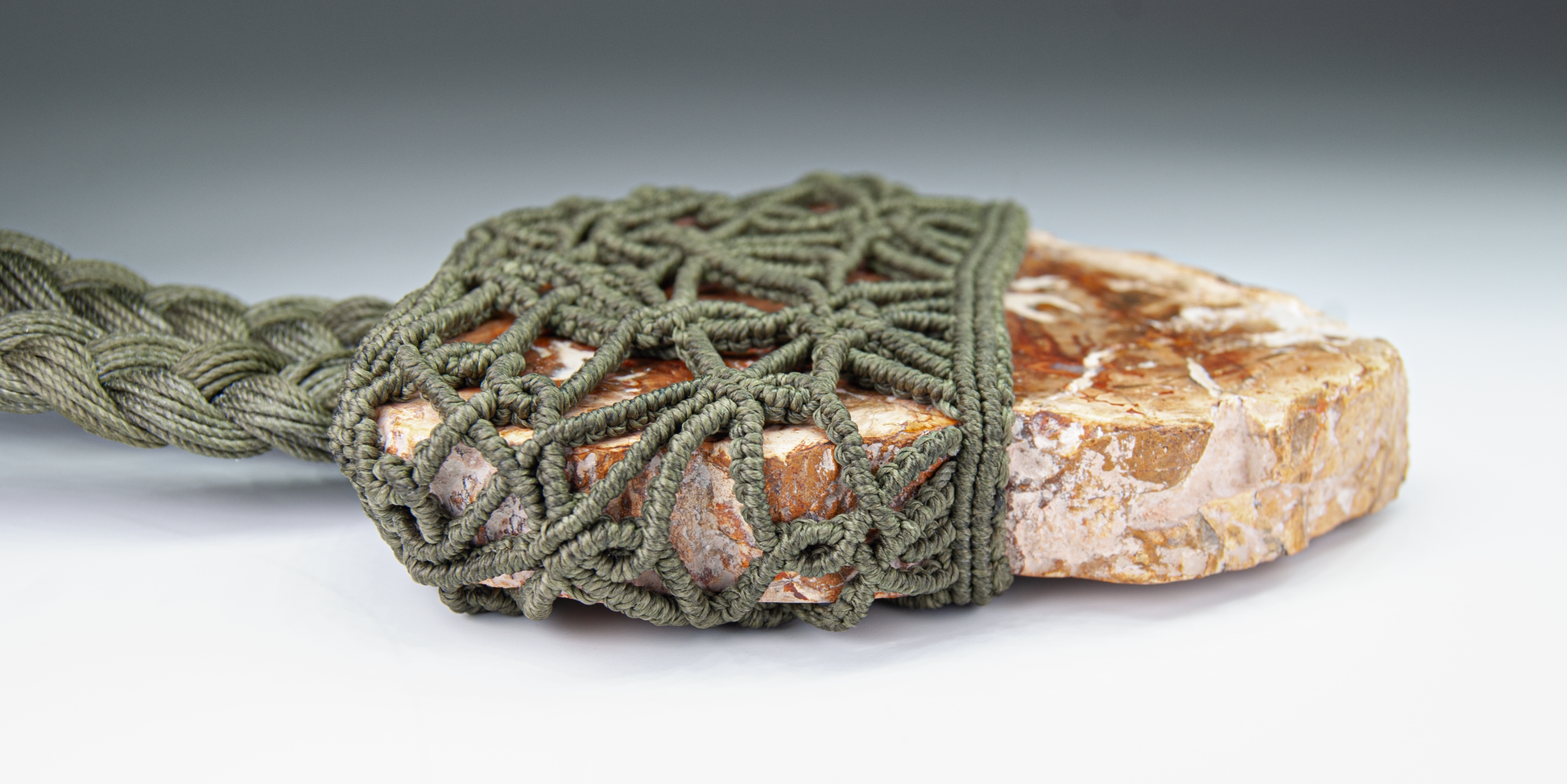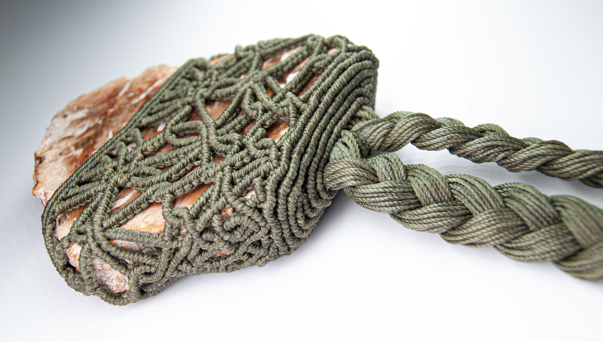 Cord: Strong, water-resistant waxed macramé, knotted with meticulous detail