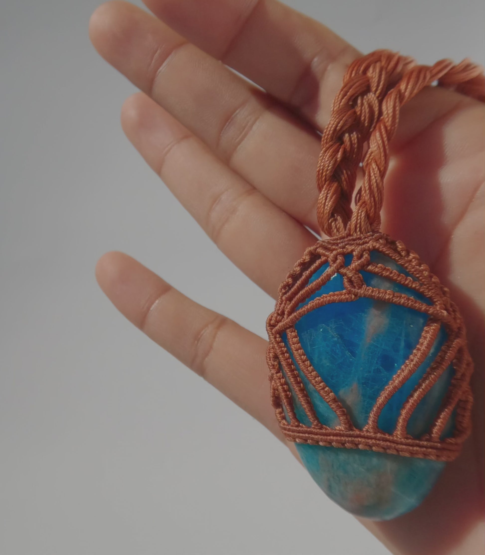 Throat Chakra Apatite Necklace – Handmade Healing Macramé Pendant