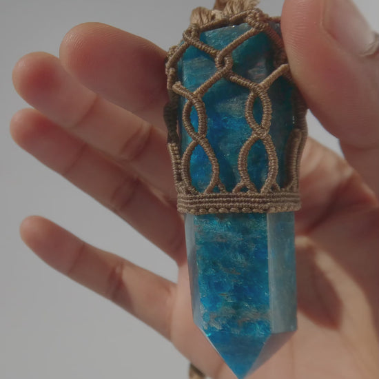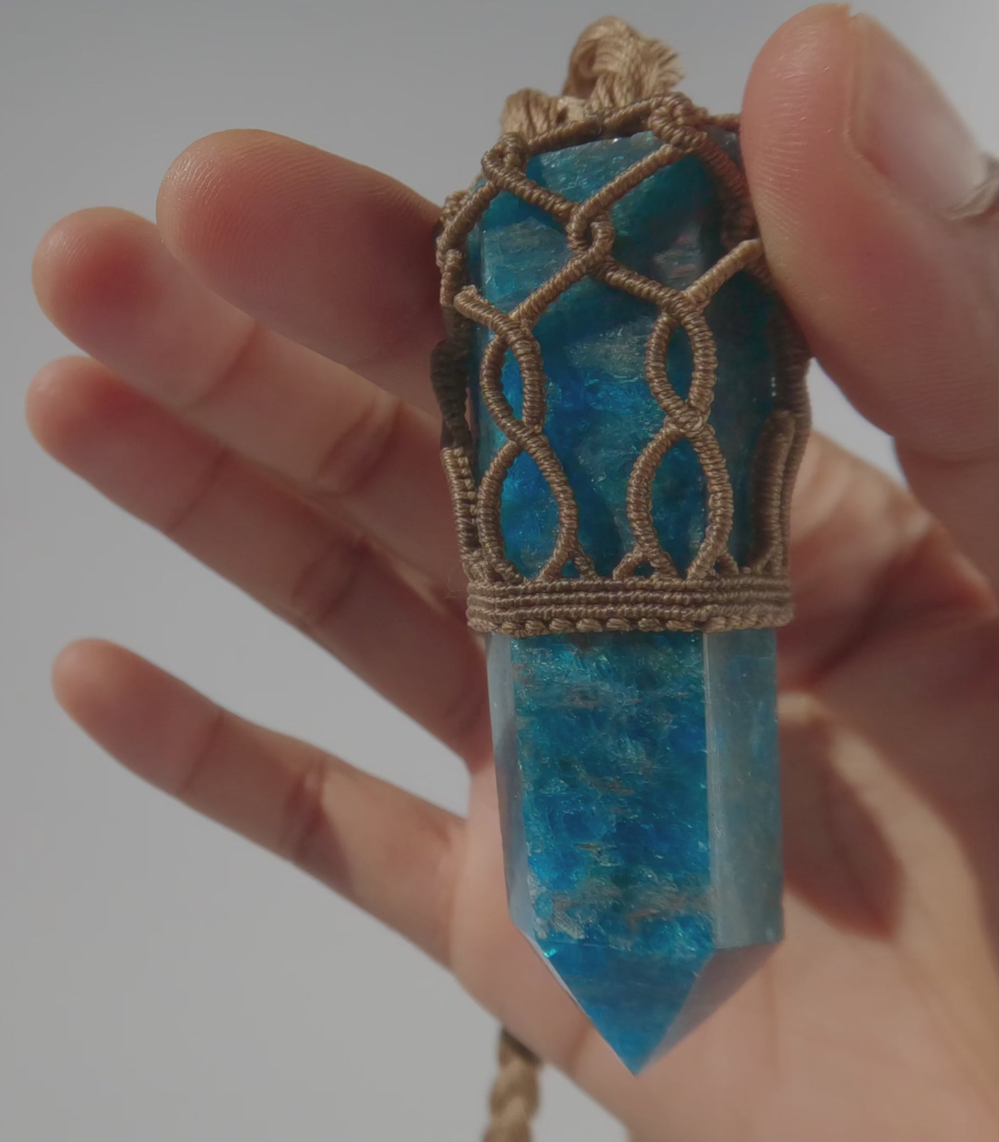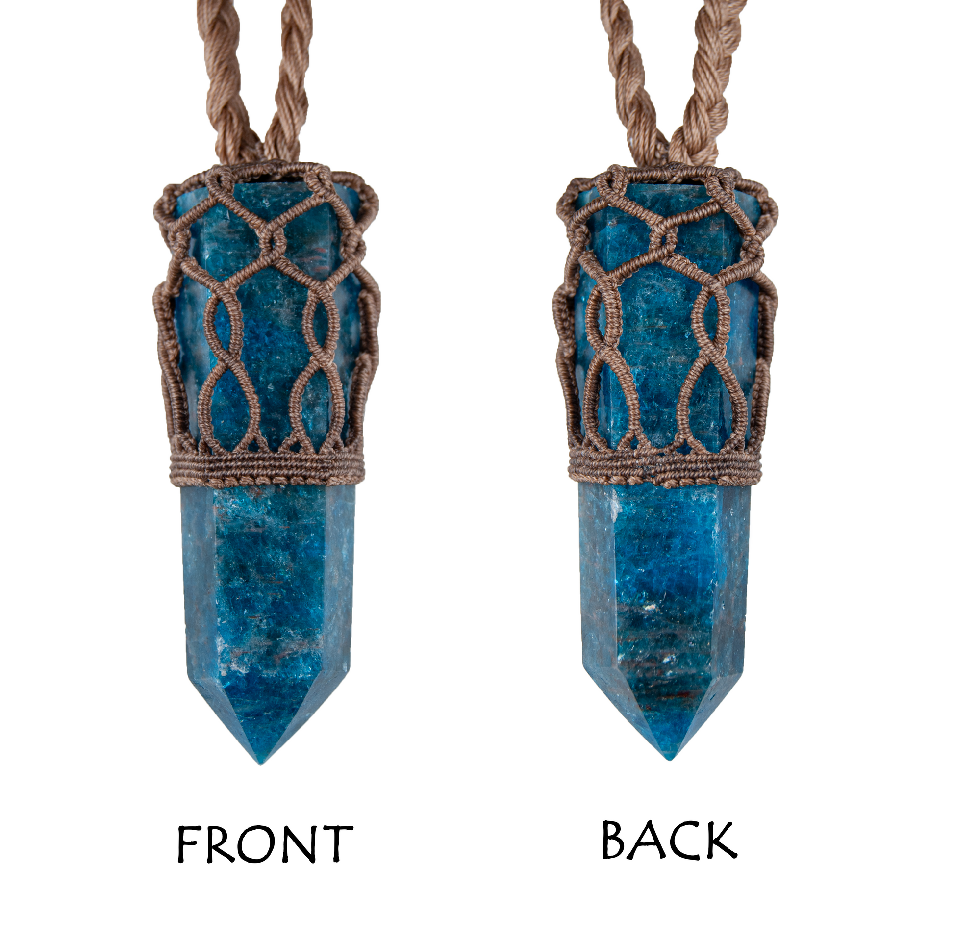 Make a statement that resonates on a deeper level with this unique handmade necklace, featuring a natural apatite point pendant wrapped in durable, waxed macramé thread. Every detail is the result of precise, intricate artisan work, making this a truly singular piece of wearable art.